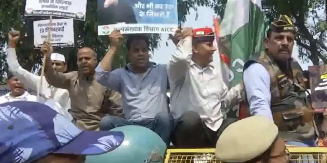 कांग्रेस पार्टी के कार्यकर्ताओं ने आज दिल्ली स्थित कांग्रेस कार्यालय पर केंद्र सरकार के खिलाफ प्रदर्शन शुरू कर दिया है। दरअसल प्रवर्तन निदेशालय (ED) ने कांग्रेस के नेशनल हेराल्ड अखबार से जुड़े मनी लॉन्ड्रिंग केस में चार्जशीट दाखिल की है। इसके खिलाफ आज कांग्रेस पार्टी देशभर में प्रदर्शन कर रही है।