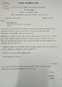 The Public Interest Litigation was heard by Ram Singh Meena (IPS), Member of the Uttarakhand Human Rights Commission, and orders were issued to the Director of Traffic, Dehradun, for action.